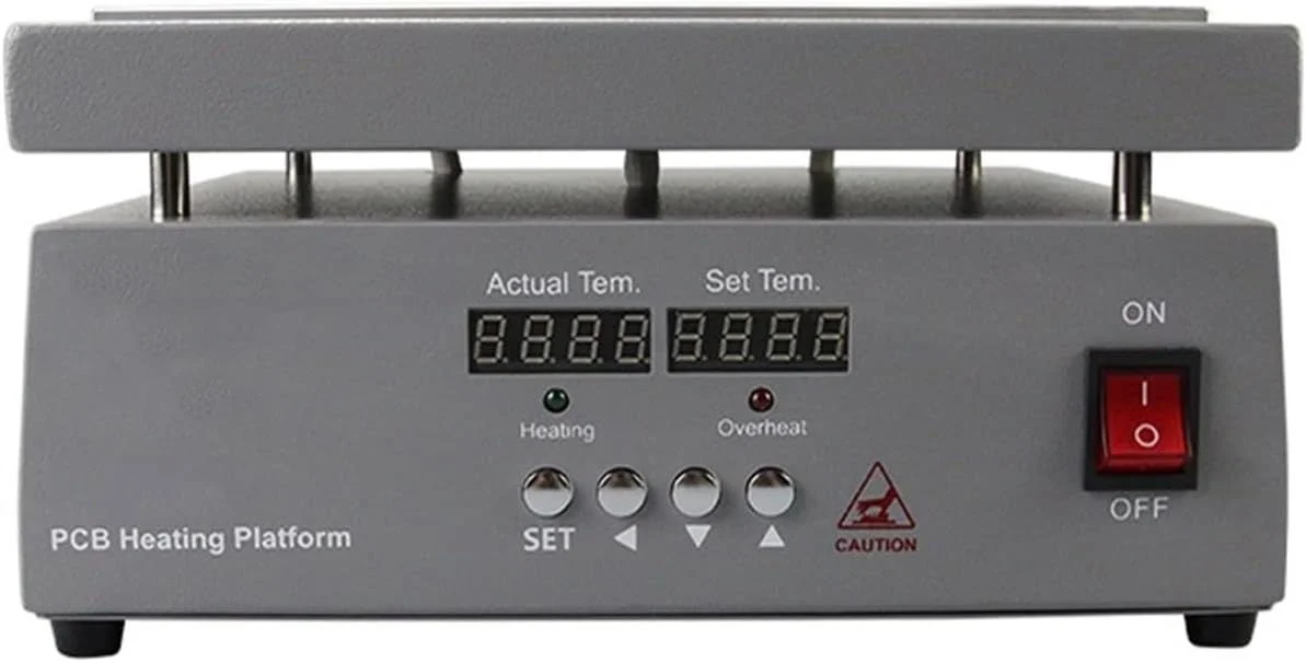 PCB Alt Isıtıcı, elektronik kart onarımlarında ve hassas lehimleme işlemlerinde ihtiyaç duyulan sabit ısıyı sağlayarak PCB yüzeyini eşit şekilde ısıtır. Özellikle küçük ve orta ölçekli kartlarla çalışan teknik servisler ve elektronik hobi meraklıları için kompakt, kullanışlı ve dijital kontrollü bir çözümdür.